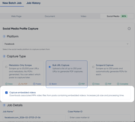 If video files are not necessary for your matter, the embedded video option can be turned off during batch setup — giving you flexibility based on the needs of the case.
